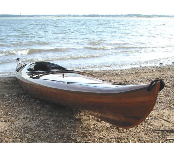 The Expedition Sport is an medium-sized touring kayak designed by Vaclav Stejskal of One Ocean Kayaks. It is 16 feet 9 inches long and 21.5 inches wide. It is designed for an ideal paddler and gear capacity of 160 pounds and to be very efficient at typical paddling speeds. My weight is near 150, so this boat was designed for me. It also has plenty of storage capacity for overnight trips. I built this kayak in 2004.