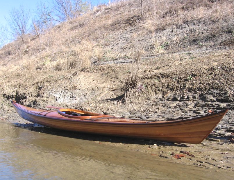 It is my own design, but heavily influenced by Valley Sea Kayaks' Avocet and Nigel Dennis' Romany. The Artist is 2" shorter than the Avocet and Romany, though it has an identical waterline length. The length was reduced 2" by having a less extreme pointy bow, but it still has plenty of reserve buoyancy. The Artist is also 1/2" wider than the Avocet. The extra width increases the volume at the sides, so that when edged the bow and stern pick up out of the water even more, helping it to spin easier.
