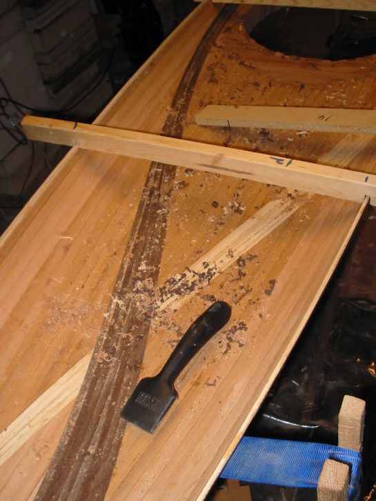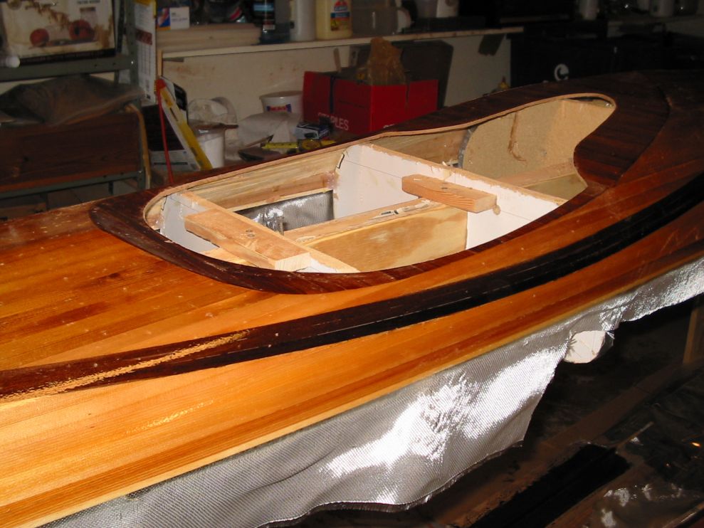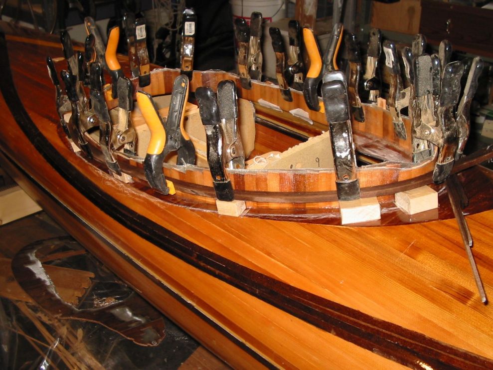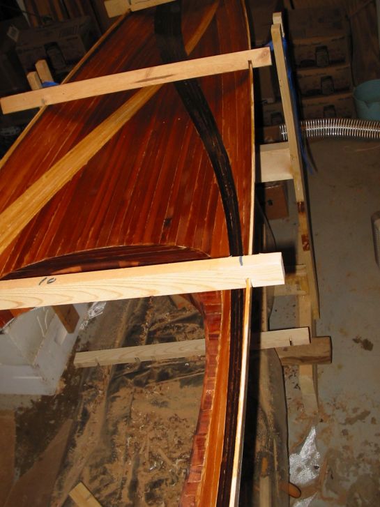 lip of mahogany. Scraps of cedar strips were held in place with hot melt