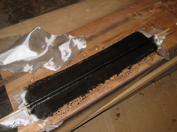 fiberglass over the foam. The epoxy was mixed with some graphite powder to