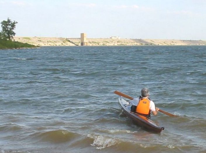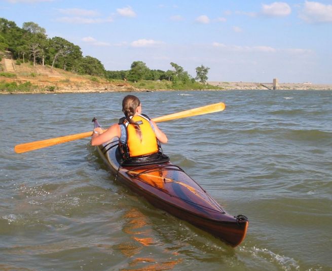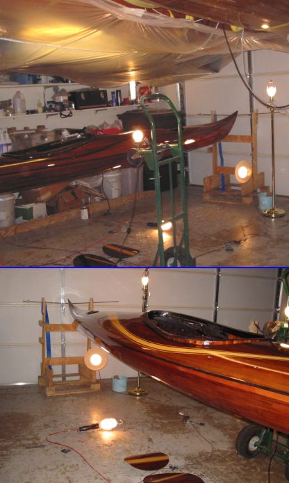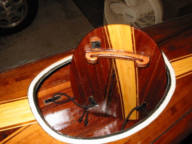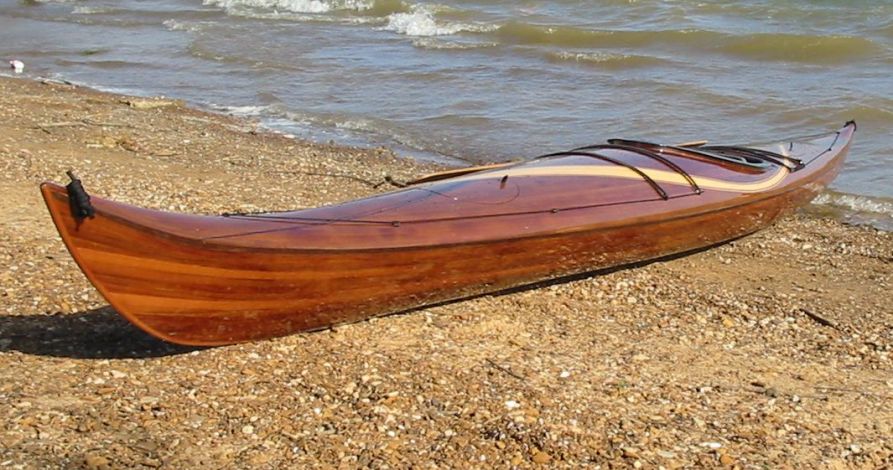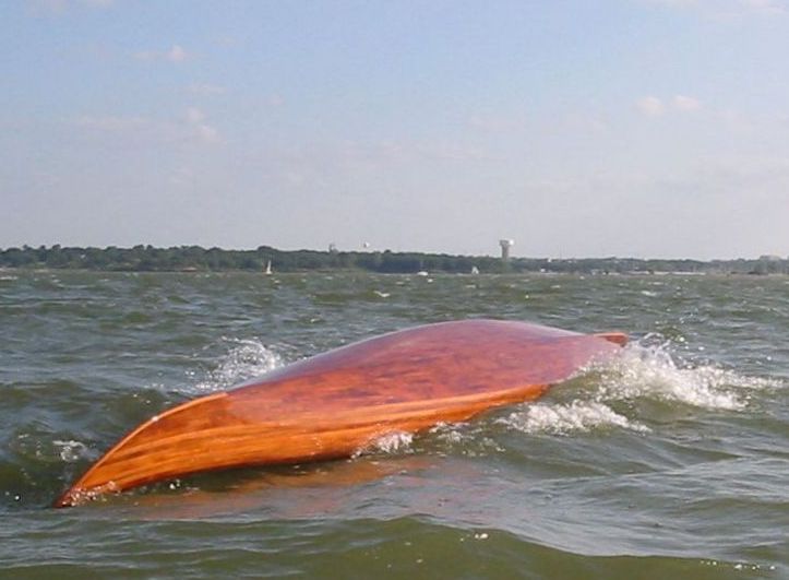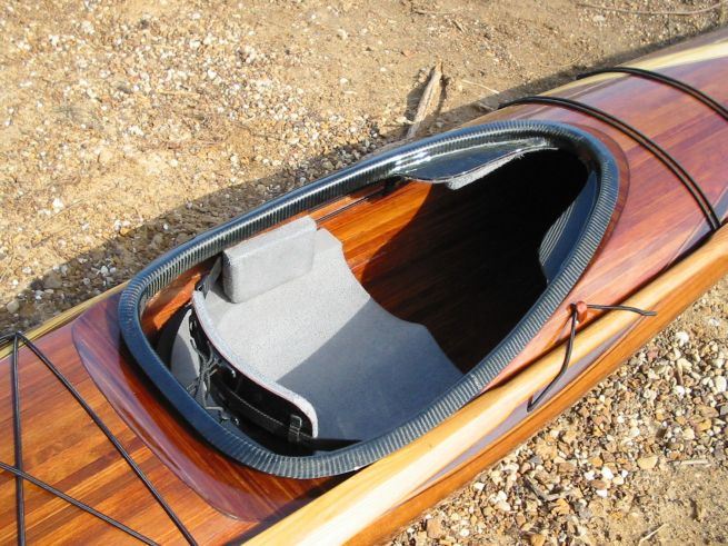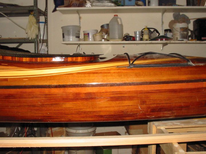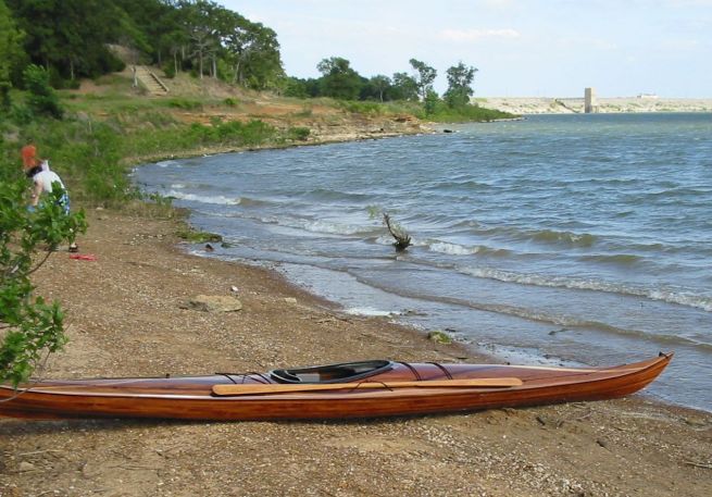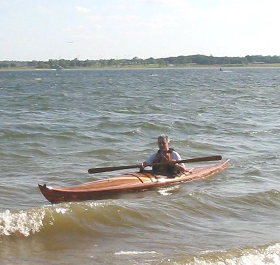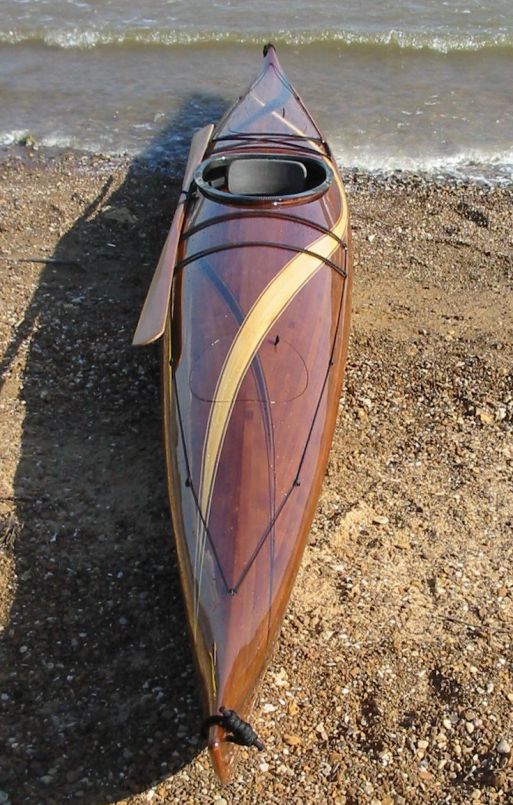 The Expedition Sport is an medium-sized touring kayak designed by Vaclav Stejskal of One Ocean Kayaks. It is 16 feet 9 inches long and 21.5 inches wide. It is designed for an ideal paddler and gear capacity of 160 pounds and to be very efficient at typical paddling speeds. My weight is near 150, so this boat was designed for me. It also has plenty of storage capacity for overnight trips. I built this kayak in 2004.