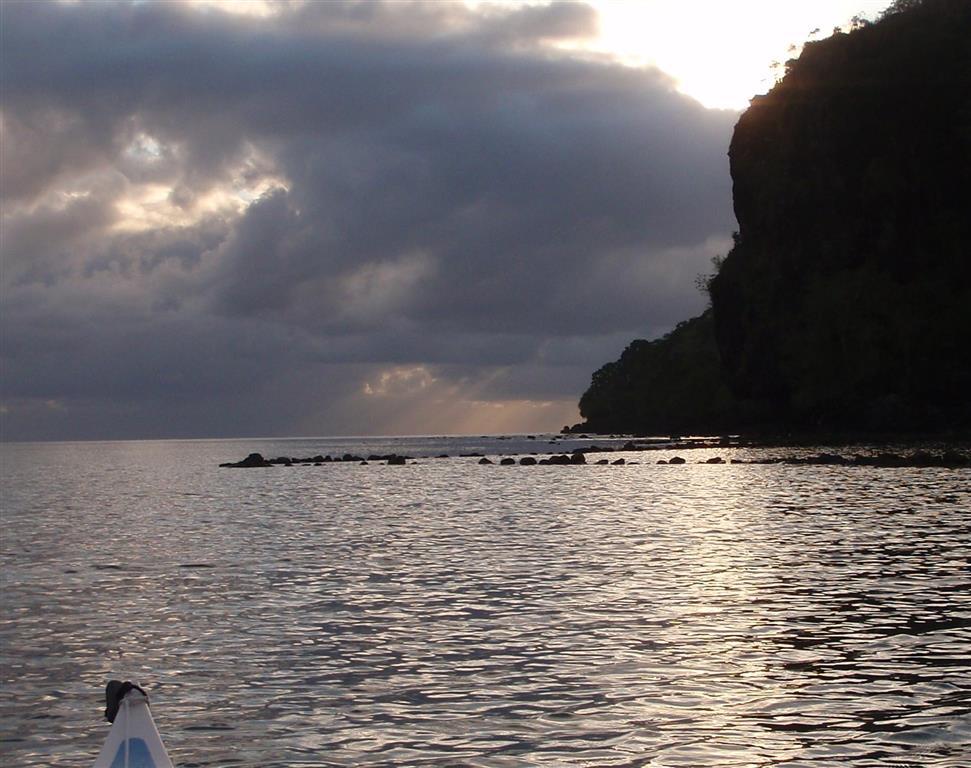 The unloaded kayaks weighed approximately 18 kg (40 pounds). |  |  A tranquil cove, out of the wind. |